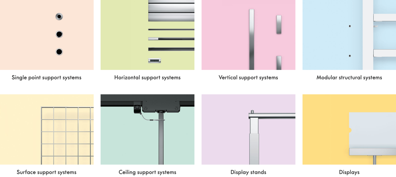 Вертикальная система "Beam" предлагает высокий уровень гибкости для размещения товара. Полностью сконструированный без слотов технологический профиль невидим: поддержки товаров, такие как передние рукоятки, кронштейный, рельсы, крючки и держатели можно просто зафиксировать с шагом 50 мм. Профиль Beam может быть установлен на панелях из большого количества материалов или быть встроен в существуюущую стену.Торговая система подходит как для легких, так и для тяжелых товаров. Благодаря своему тонкому дизайну, Beam профили также прекрасно дополняют существующие торговые интерьеры.